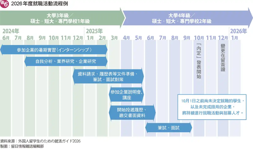 以上图为例,想要2026年4月入社的学生,必须从2024年开始准备,2025年进行选考,最后在2026年4月正式就职。